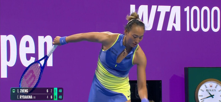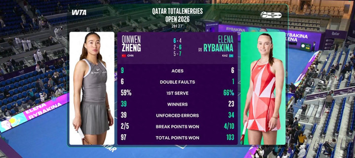 抢七局郑钦文一度4-1开头,莱巴金娜晋升一发进球率,连得5分拿到赛点,郑钦文提拔一个赛点后反手出界,以5-7告负。