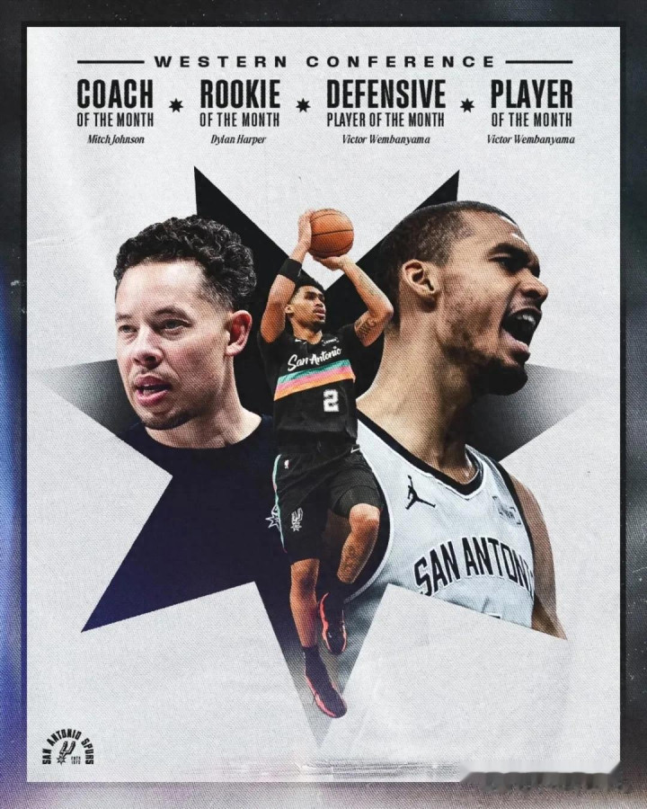 前无古东说念主啊,马刺队竟包揽了统统月度奖项!近日最新评比出炉,2月月度最好球员和最好扎眼球员均被文班摘下,新帅米奇被评为最好教师,最好少壮则包摄于一年齿的哈珀。这也让马刺成为NBA历史首支销毁个月斩获这四项奖项的球队。