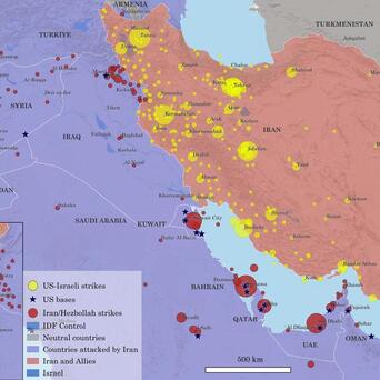 甘休3月18日晚,好意思以联军与伊朗屈膝组织(包括“真主党”、伊拉克屈膝组织)照旧打了19天了,米兰体育来瞅瞅外网统计的19天以来两边彼此打击的盘算边界以及强度,圈越大暗示被轰炸的越狠。