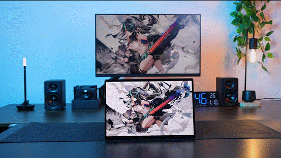 条记本样式:磁吸全尺寸 RGB 背光键盘一接,秒变出产力器具。48GB LPDDR5X 高频内存 + 1TB PCIe 4.0 SSD,多开野心软件毫无压力。