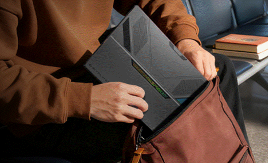 第一印象:它太像一台优雅的“办公本”了。但背部的散热格栅和 RGB 矩阵铭牌,婉曲露出出它的实在贪心