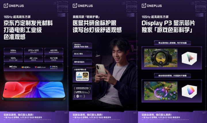 日前, @一加手机 发布了新机的屏幕细节预热海报,并配文称,“一加 Ace 6 至尊版搭载「165Hz 超高刷东方屏」!