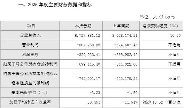 2025年,天合光能已矣营业总收入672.79亿元,较上年同期减少16.20%;包摄于母公司统统者的净利润-69.94亿元,上年同期为-34.43亿元;加权平均净钞票收益率-30.46%,较上年同期减少18.52个百分点。