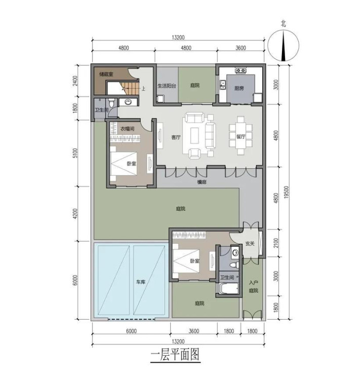 动静分区: 车库位于西南角,寥寂启齿,车辆收支不影响居住区的宁静。