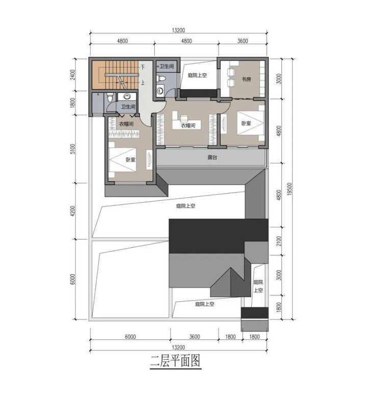 二层则是纯正的居住空间,要点在于舒贬抑: