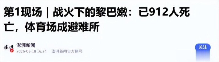 从3月2日冲突骤然升级到3月17日,短短16天,黎巴嫩这片地皮就被血色袒护,冰冷的数字背后,是无数家庭的幻灭和无限的伤痛。