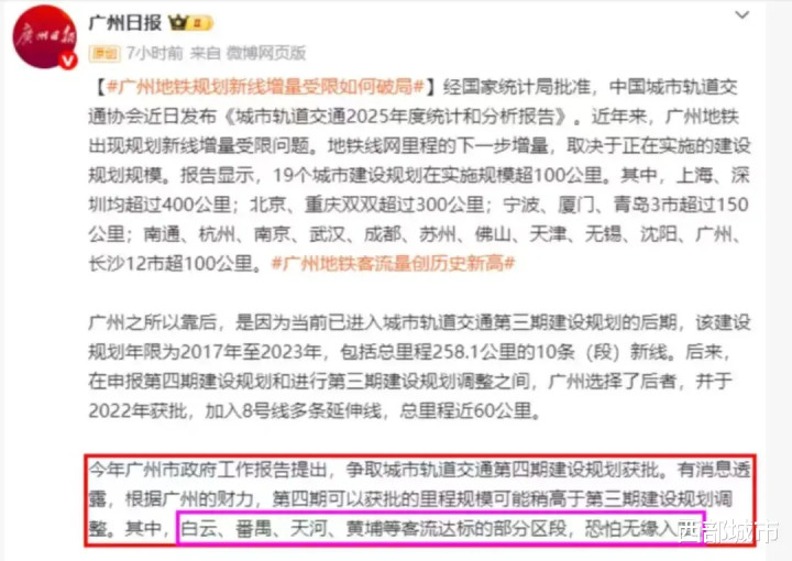 有音问浮现,凭证广州的财力,第四期不错获批的里程界限可能稍高于第三期开垦谋划调度。